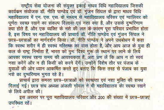नशा मुक्ति हेतु कार्यक्रम