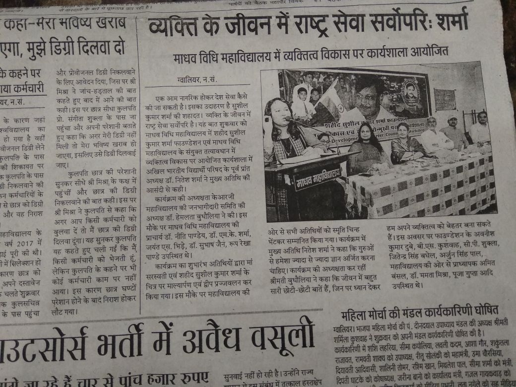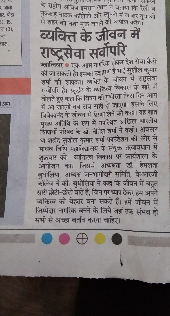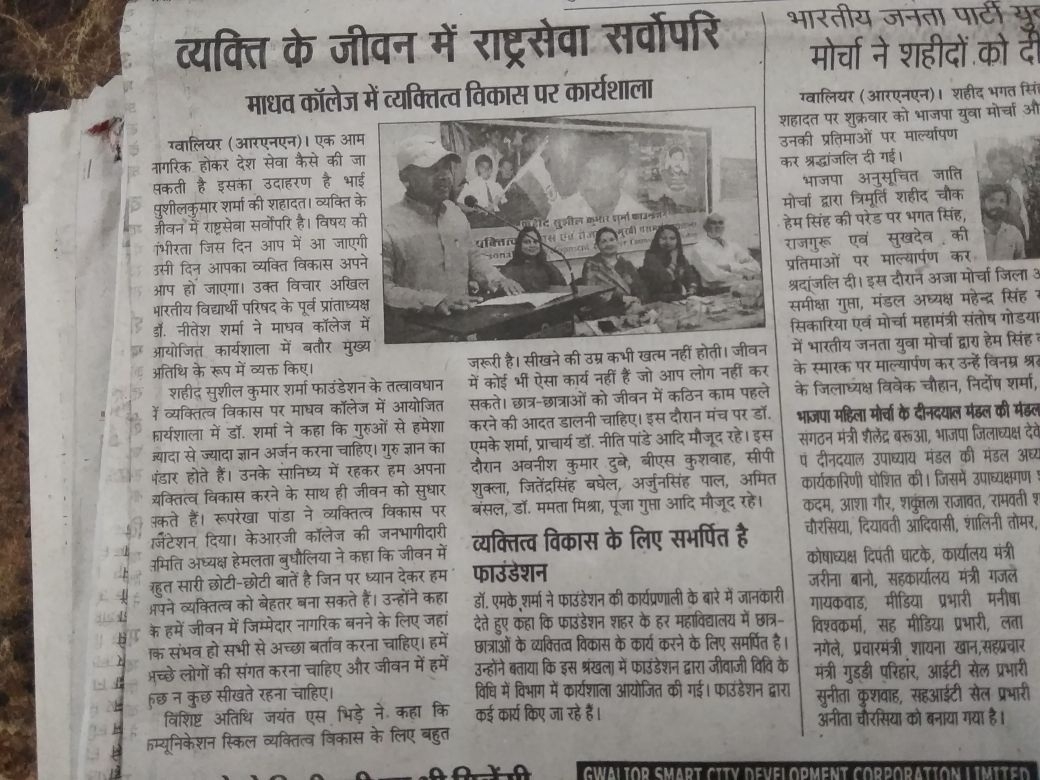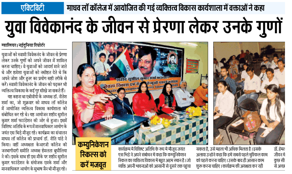 व्यक्तित्व विकास हेतु एक दिवसीय कार्यशाला का आयोजन