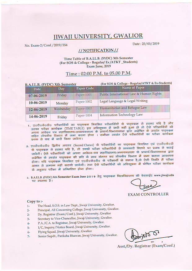 TIME TABLE OF B.A.LL.B. 10th SEM