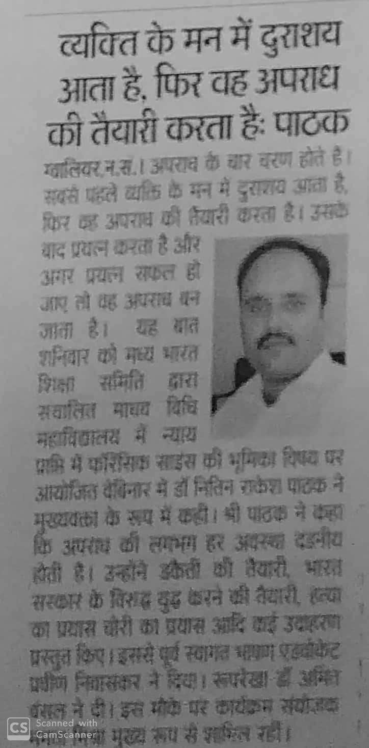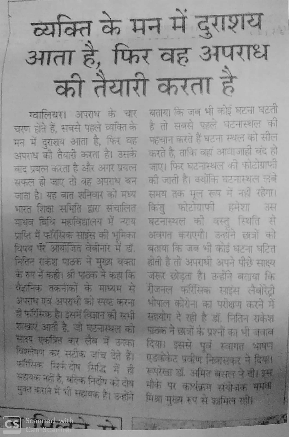 आईक्यूएसी सेल के सुपर विजन में माधव विधि महाविद्यालय मैं पर एक ही साइंस विषय पर कार्यशाला का आयोजन किया गया। जिसमें मुख्य वक्ता डॉ नितिन राकेश पाठक जी रहे।