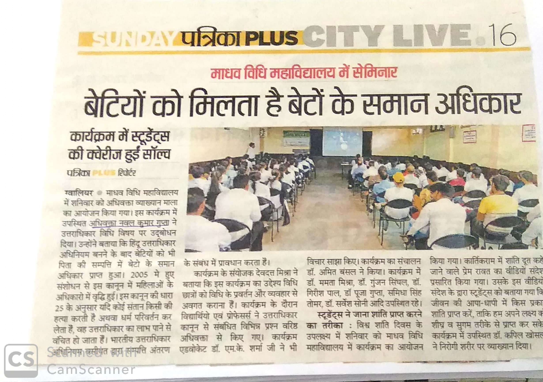 माधव विधी महाविद्यालय, ग्वालियर    16-Dec-2020