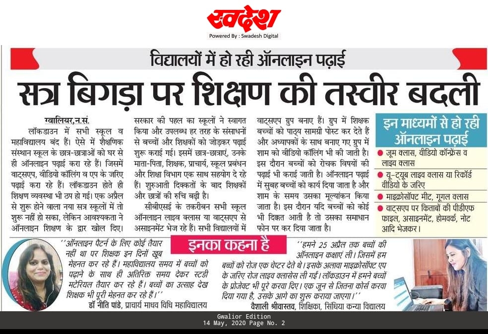 महाविद्यालय में हो रही है ऑनलाइन पढ़ाई